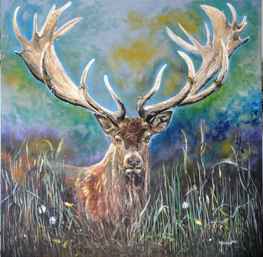 Last exhibition.....20 new pieces: "Extinct in Your Lifetime?"" plus a 100cm x 100cm acrylic and oil canvas of a kashmir stag painted "Live" on site